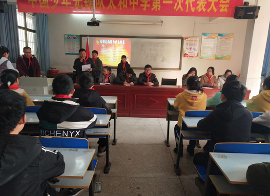 (本网讯)2019年12月13日上午,太和中学在学校阶梯室召开少先队第一次代表大会。大会由少先队大队辅导员杨蓓老师主持。出席此次大会的有家长代表及学校各中队辅导员。