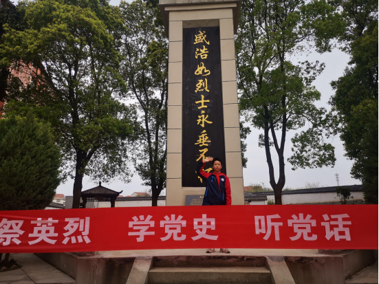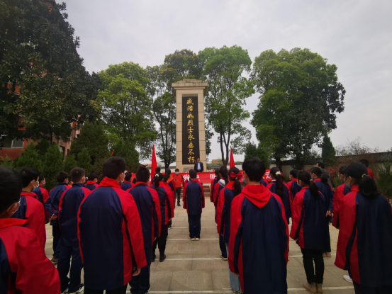 长岭中学校长向同学们介绍了盛浩如同志的英勇事迹,盛浩如同志面对敌人视死如归,浴血奋战而死,同学们听到后都肃然起敬,全体师生进行默哀。随后新时代好少年伍福同学上台发出倡议:祭英烈、学党史、跟党走,传承红色基因,争做新时代好少年。一是要缅怀革命英烈,传承革命精神;二是要树立文明新风,培养时代新人;三是要秉承绿色理念,开启文明祭祀。让我们展示出勤劳、勇敢、智慧的鄂州人的新时代风采。