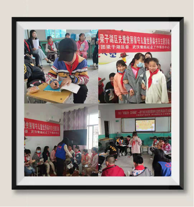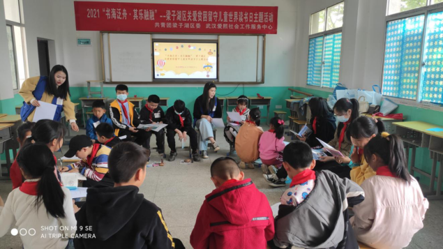 (本网讯)2021年4月25日,在共青团梁子湖区委的支持下,武汉市爱熙社工服务中心的社工们为太和镇子坛村和沼山镇朱山东村的40名困境留守儿童开展“书海泛舟·其乐融融”——梁子湖区关爱贫困留守儿童世界读书日主题活动。今年的4月23日是第26个世界读书日,在此之际,爱熙社工为子坛村和朱山东村的52名困境留守儿童开展读书会活动,陪伴他们成长,帮助孩子们培养阅读兴趣,制定阅读计划。