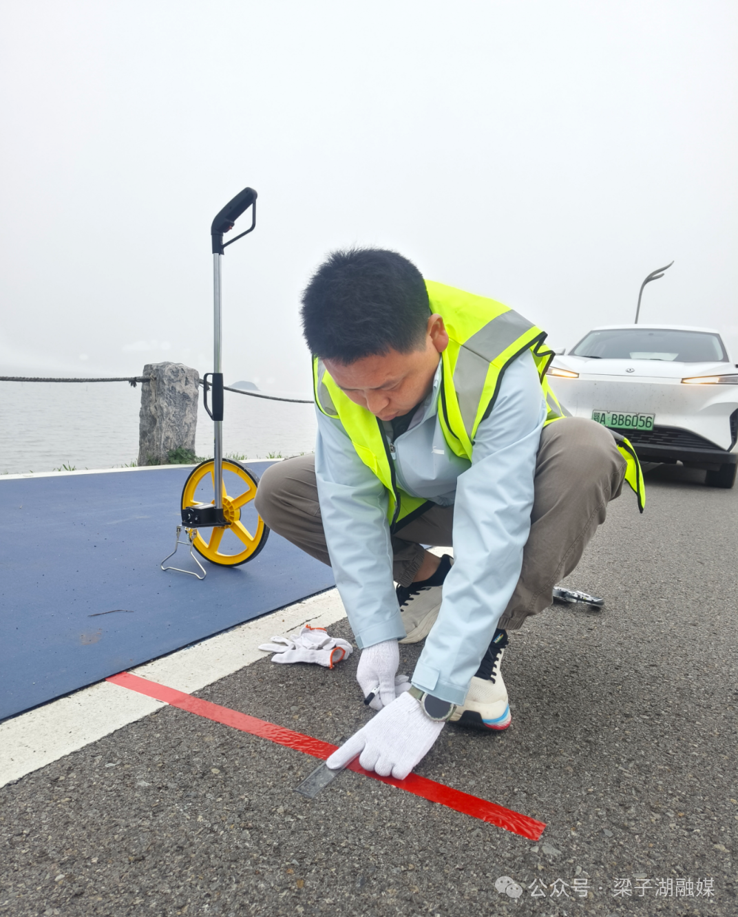 每骑行至1公里和对应位置,他都会对点位进行定点、标记并记录存档,确保比赛项目的距离符合国际田联或相关机构的规定,为赛事组委会工作人员后续对赛道细节的调整与优化提供依据。