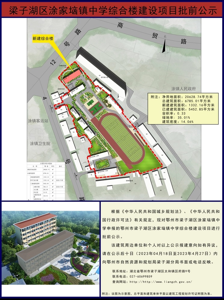 梁子湖区涂家垴镇中学综合楼建设项目批前公示