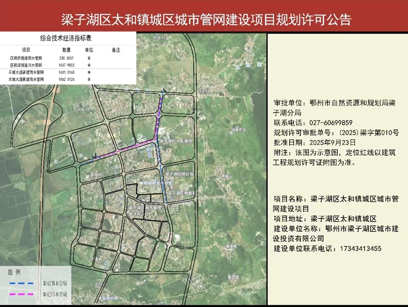 梁子湖区太和镇城区城市管网建设项目规划许可公告