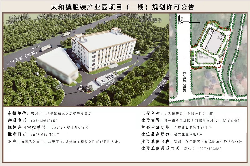 太和镇服装产业园项目(一期)规划许可公告