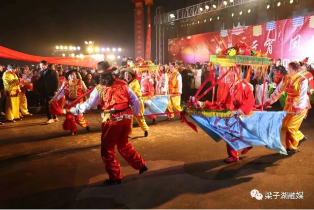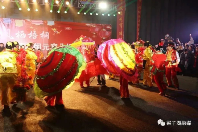 2月5日 7时,梧桐湖园区“迎新春、闹元宵”灯会演出在威风锣鼓中拉开序幕。太和镇牛石村和梧桐湖园区月山村威风锣鼓队队员们英姿飒爽,锣鼓敲得震天响。沼山镇桥柯村、楠竹村、畈雄村民俗文化艺术团的踩莲船轮番上场表演,一唱一和,迅速带动观众情绪。鲊洲村楚剧团楚剧表演,涂家垴镇戏剧变脸让观众领略到了梁子湖区戏剧大区的风采。