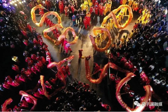 迎春锣鼓震天响,群龙共舞闹元宵。逛花灯、踩莲船、吃元宵、猜灯谜、听楚戏、舞龙狮等活动,预示着新的一年红红火火、顺顺利利。