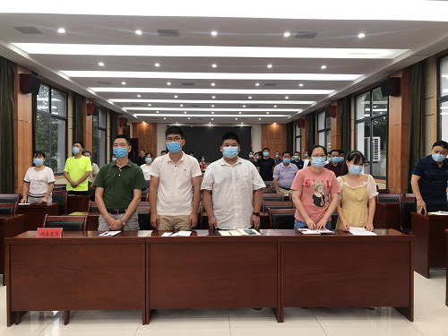 全体党员在清点到会人数、交纳党费、奏唱国歌后,镇党委委员何舟宣读了《关于2020年上半年纳新党员及预备党员转正的批复》,镇组织干事带领纳新党员在党旗下进行庄严宣誓,全体党员重温入党誓词,集体诵读新党章第三章第二十三条。