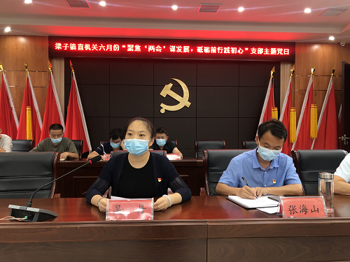 (本网讯)6月28日晚上6点,梁子镇召开“聚焦‘两会’谋发展,砥砺前行践初心”暨“庆祝建党99周年,过好‘七一’政治生日”支部主题党日。会议由镇直机关党支部书记熊志刚同志主持,镇直机关全体党员参加会议。