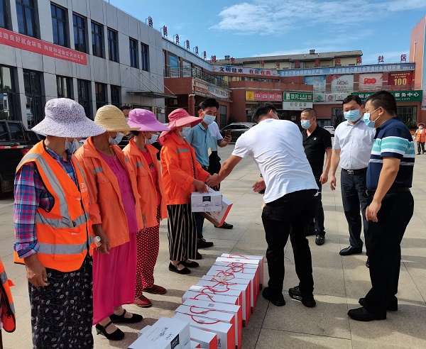 8月5日上午八点半,梧桐湖新区工委书记、管委会主任高建雄,新区工委委员、管委会副主任刘建松一行看望顶着酷暑、正在高温作业的一线保洁员,为他们送去慰问金及绿豆、银耳、毛巾等防暑降温慰问品。