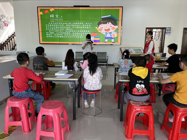 本次活动以“朗诵”的形式开展,分集体诵读和个人诵读。集体诵读由志愿者和老师带领孩子们一起朗诵毛泽东同志的《七律长征》,通过反复诵读,在诗词中寻找万里河山的广阔。个人诵读部分以孩子们自选近代红色经典读物为主,卢夏诗宇小朋友朗诵了叶挺将军的诗文《囚歌》、尹静瑶小朋友为大家分享了《红星照耀中国》节选......老师还通过释文为孩子们做详细解说,引导学生广泛了解民族文化,弘扬传统美德,进一步加强爱国主义教育,精彩的解说,引发了现场小朋友的共鸣,赢得了阵阵掌声。