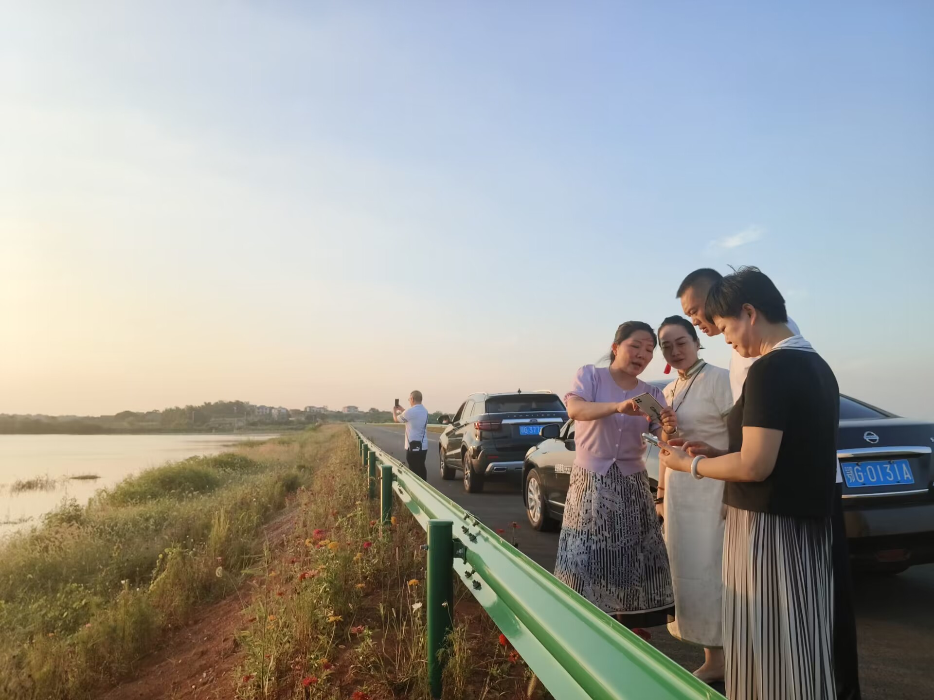 最后,考察组实地考察了涂家垴镇原藠头厂、汪家湖、春雨薯业、武昌鱼小镇、涂镇湖等地,在考察汪家湖项目时,黄小飞看到夕阳西下,群鸟纷飞,青蓝的湖面被微风掀起阵阵波浪不禁感叹到:“风烟出没美无度,眼约图景湖连天,心随飞鸟驭风叹,一声渔唱村廊晚。”表示这里就是他要寻找的原生态旅游度假综合体的理想胜地,并期待下一步与涂家垴镇的合作。