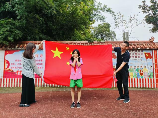 升旗仪式结束后,东边朱小学还组织师生之间开展“我和国旗合个影”活动,师生们通过各种形式将自己和五星红旗定格在一起,一张张独具特色的合影蕴含着无限的热爱,表达了对伟大祖国的美好祝愿,昭示着美好的未来。(太和镇 东边朱小学)