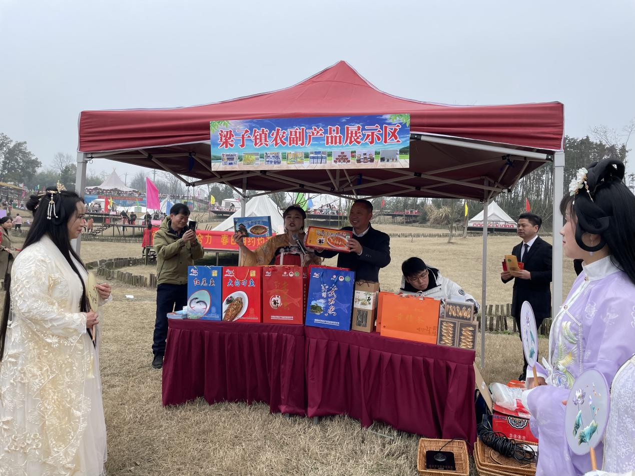 在农副产品展示区,“才饮长沙水,又食武昌鱼”身着汉服的梁子讲解员如是介绍,“大红鱼”“武昌鱼”“铁皮石斛”悉数登场,弘扬传统饮食文化,挖掘推广梁子特色美食。
