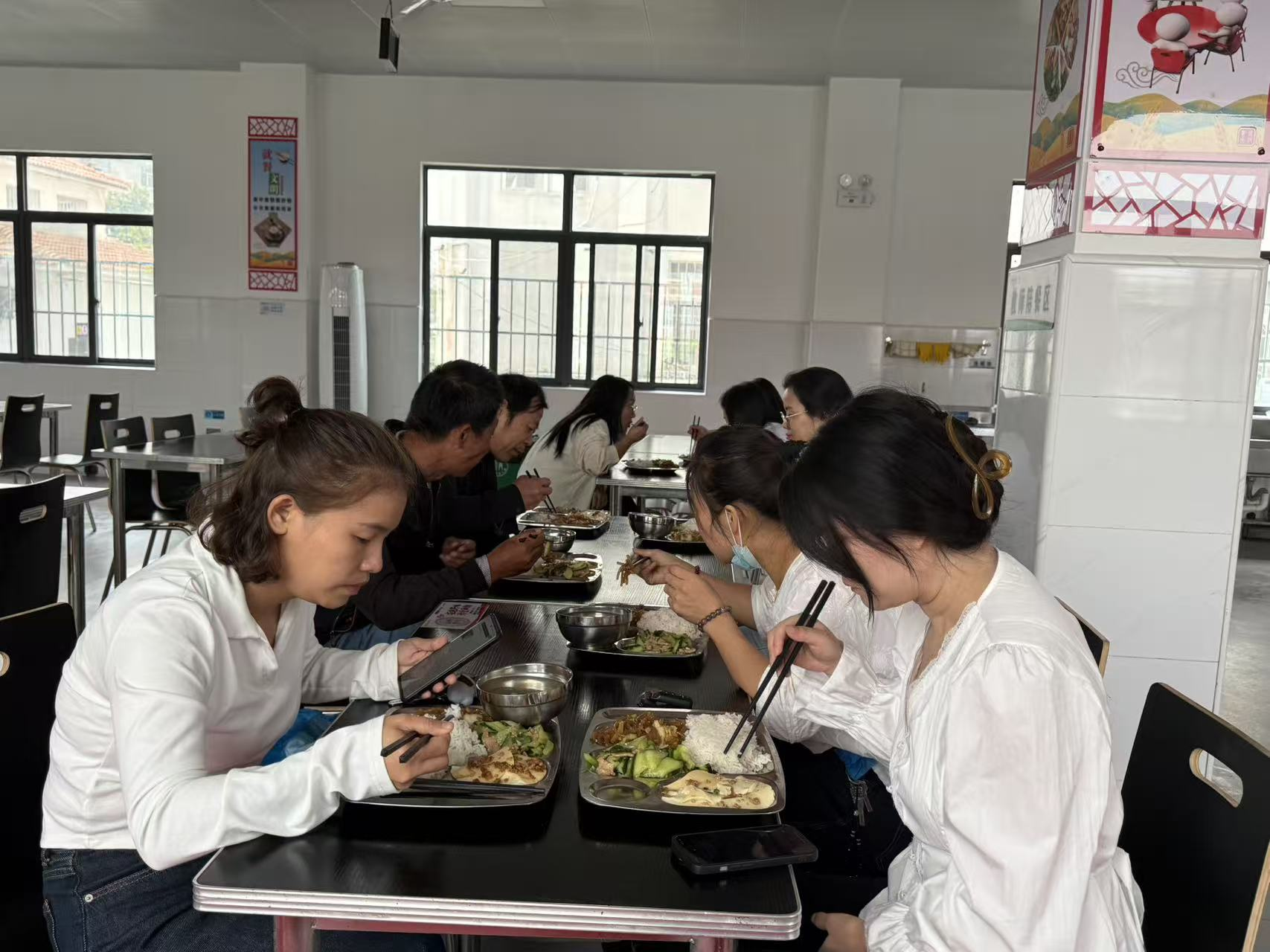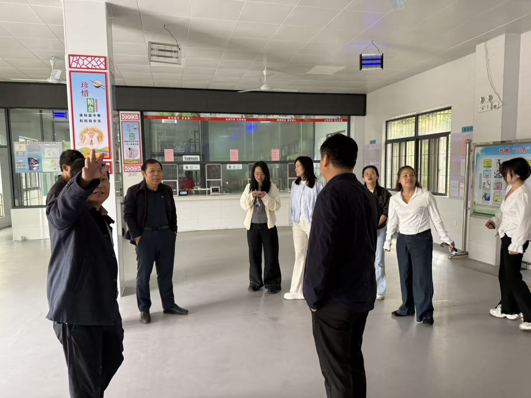 活动中,食堂管理员盛志高老师引导代表们穿戴卫生帽和口罩,有序进入后厨参观。大家先后查看数字食堂监管平台,了解省、市纪委及教育局对食堂流程的直接监管机制;检查仓库内米、面、油等大宗食材的采购渠道、生产日期及“离地离墙”存放情况;观摩清洗消毒区蔬菜肉类分池清洗、餐具回收消毒全过程,以及加工烹饪区生熟食砧板刀具区分、厨师规范操作场景;详细了解留样冰箱内菜品留样的规定、时间与追溯作用,同时通过大厅显示屏的“明厨亮灶”监控系统,实时监督后厨各环节操作,全面掌握食材从采购到烹饪的全流程规范。