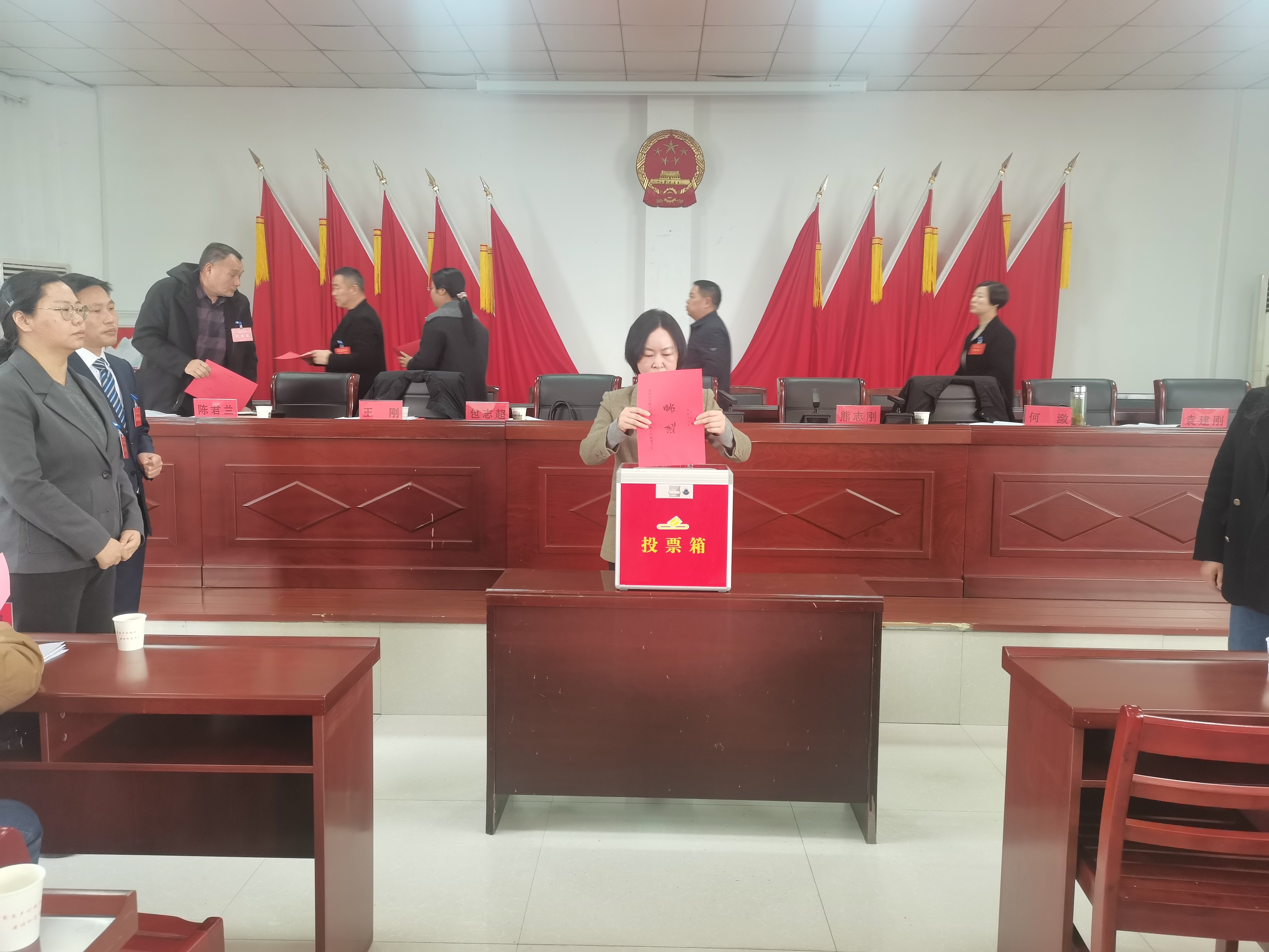 在第二次全体会议上,依法选举王刚同志为沼山镇人大主席。