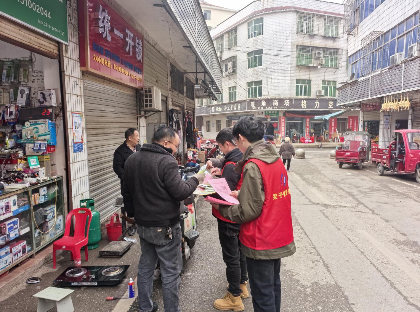 活动中,身着“梁子镇普查员”红马甲的普查员们化身行走的“宣传员”,在集镇主干道醒目位置张贴农业普查海报,向过往群众、商户逐一发放宣传折页,用通俗易懂的“家常话”详解农业普查的目的、内容及现实意义。从街头五金店到巷尾杂货店,从热闹集市到居民家门口,处处留下普查员们忙碌的身影。针对群众关心的“普查会不会增加负担”“个人信息是否安全”等高频问题,普查员们耐心细致答疑解惑,让大家清晰认识到,农业普查既是摸清“三农”家底的关键举措,更直接关系未来农业政策制定与乡村发展方向,与每位村民的切身利益紧密相连。