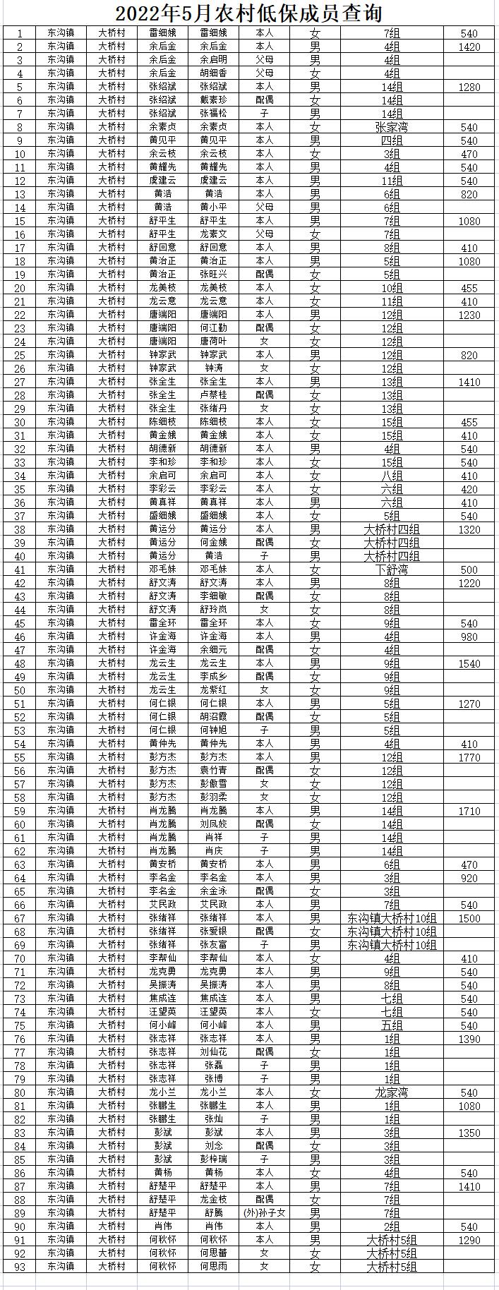 2022年5月农村低保成员查询