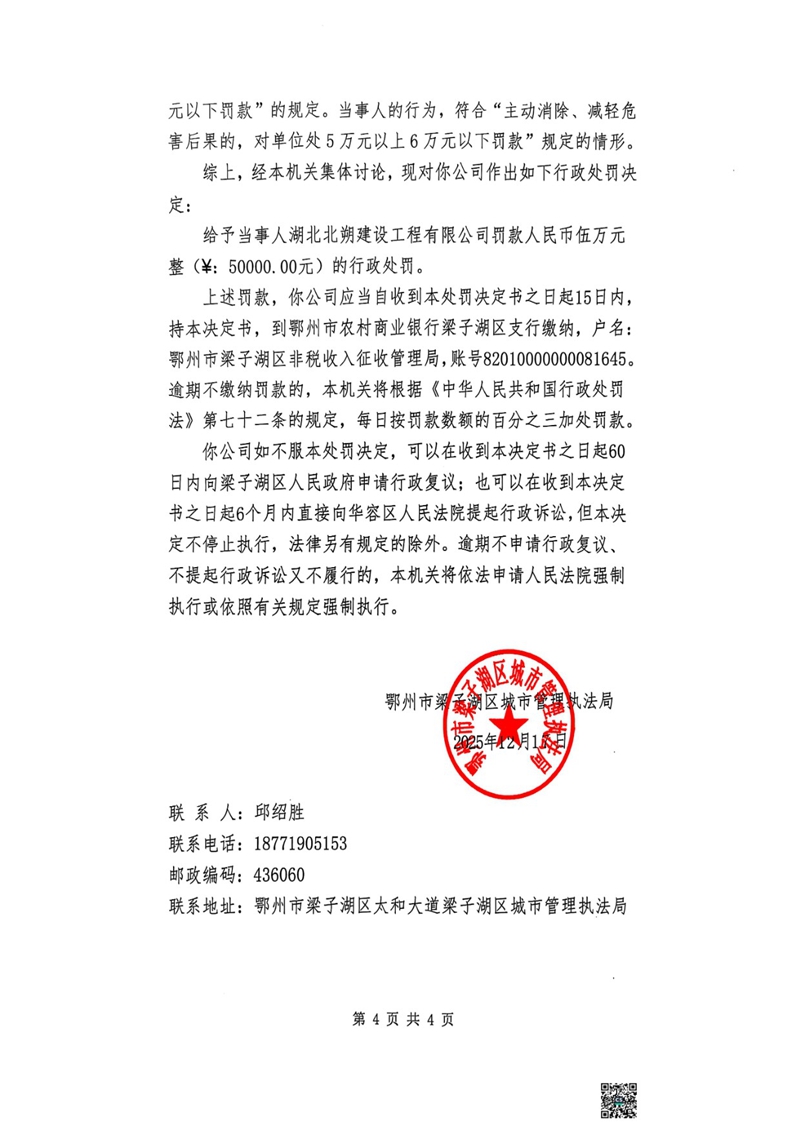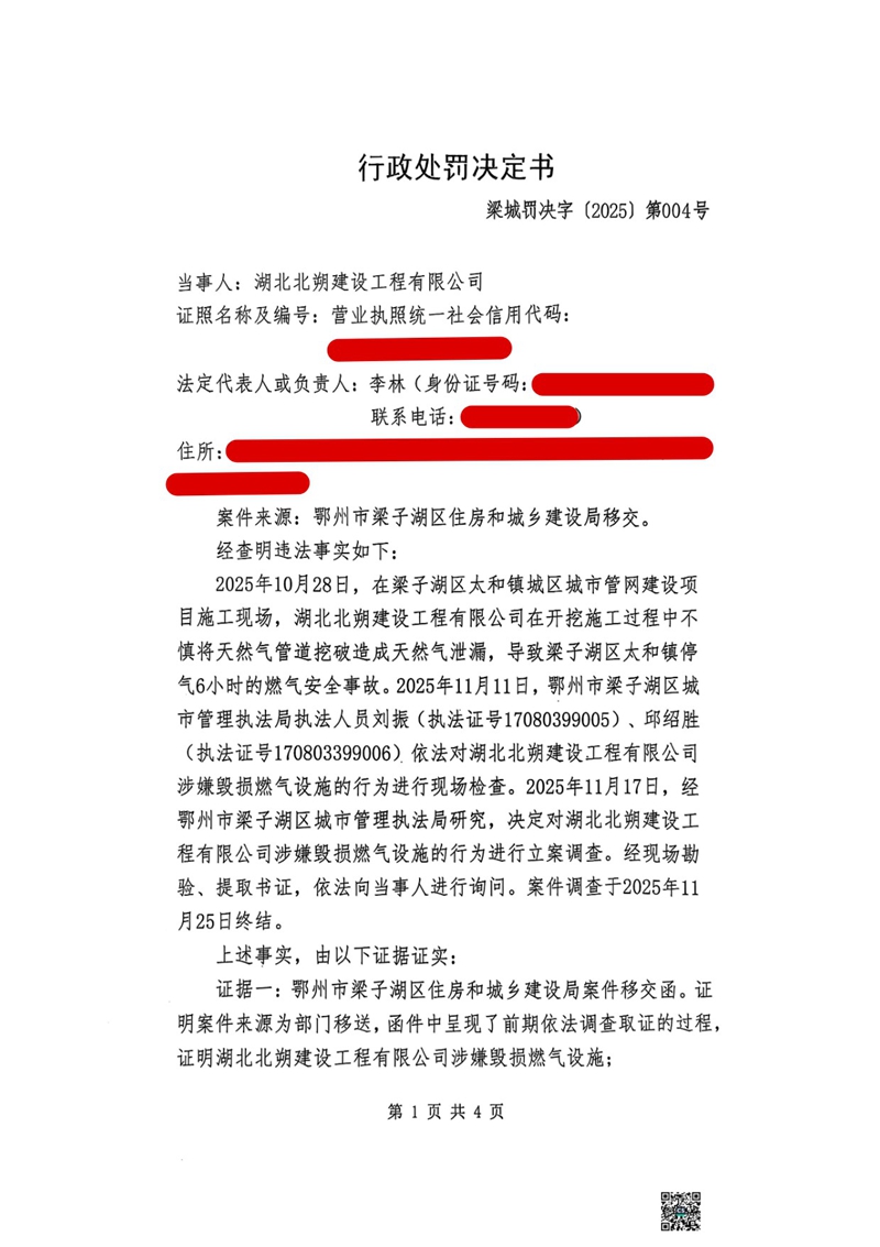 行政处罚决定书 梁城罚决字〔2025〕第004号