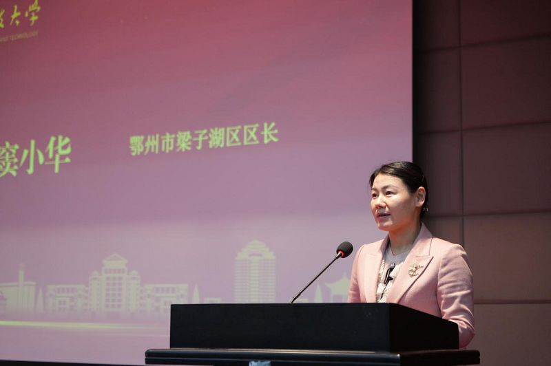 窦小华代表区委区政府,向老师和同学们表示热烈的欢迎和衷心的感谢。她指出武汉科技大学办学历史悠久、科研实力雄厚、学科门类齐全、发展特色鲜明,构建了以工为主、理工结合,多学科门类协调发展的综合性大学学科体系,与梁子湖区现有产业布局和整体发展方向高度契合。长期以来,梁子湖区与武汉科技大学结下了深情厚谊有着特殊的缘分。她表示,梁子湖区将为各类人才提供广阔的发展平台、优厚的待遇和良好的工作生活环境,诚挚邀请广大优秀学子到梁子湖区研学游学、就业创业、成家立业。