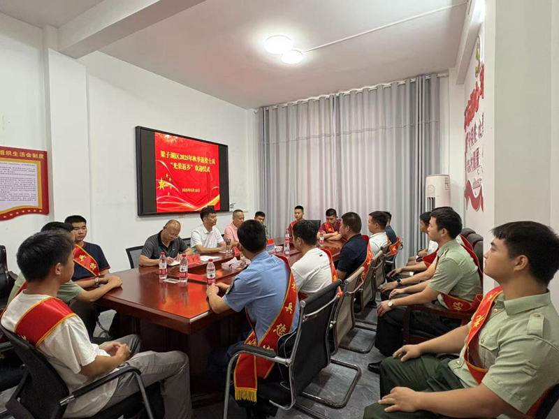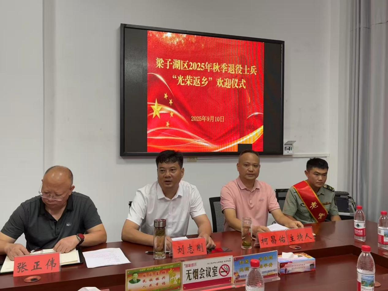 副区长刘志刚对退役士兵们的归来表示热烈欢迎。讲话中盛赞退役士兵们作风优良、纪律严明,鼓励退役士兵们发挥军人优势,在梁子湖区的生态建设、产业发展等领域发光发热,区政府将全力支持他们干事创业。