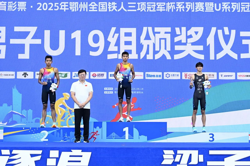 男子U19组方面,来自云南铁人三项队的李岩松以00:54:52的成绩摘金,云南铁人三项队的管苑辰以00:55:54获亚军,湖北铁人三项队的余越以00:56:08的成绩获季军。