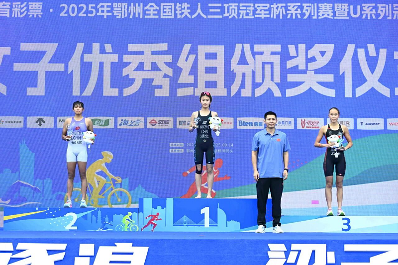随后进行的女子优秀组、U19组及U17、U15、U13组别赛事同样精彩纷呈。女子优秀组比赛中,湖北体彩铁人三项队的王首晴凭借出色发挥以01:01:40折桂,福建铁人三项队应淘梅子以01:02:42列第二,黑龙江铁人三项队刘倩颖以01:04:12的成绩列第三。