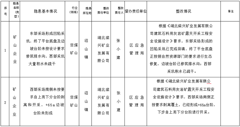 附件:梁子湖区人民政府安全生产重大隐患摘牌销号清单