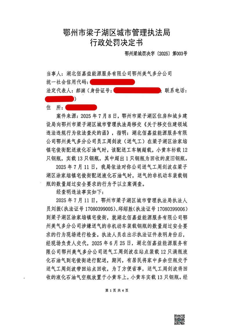 行政处罚决定书 梁城罚决字〔2025〕第003号