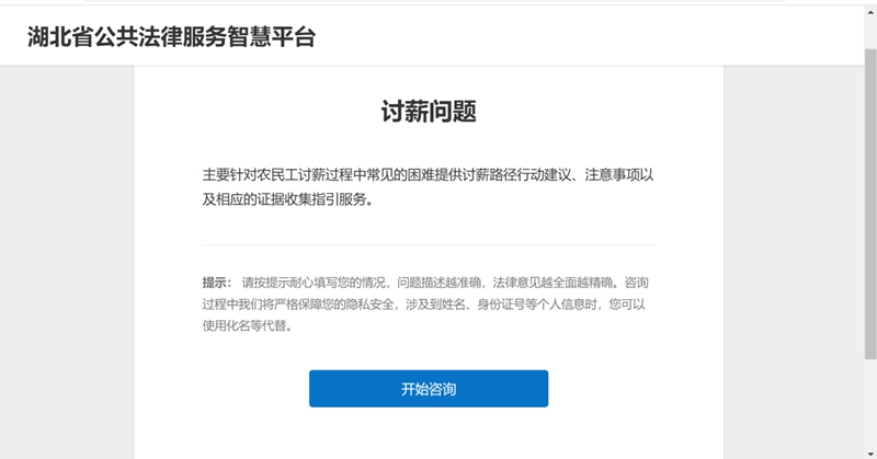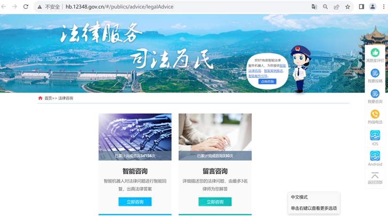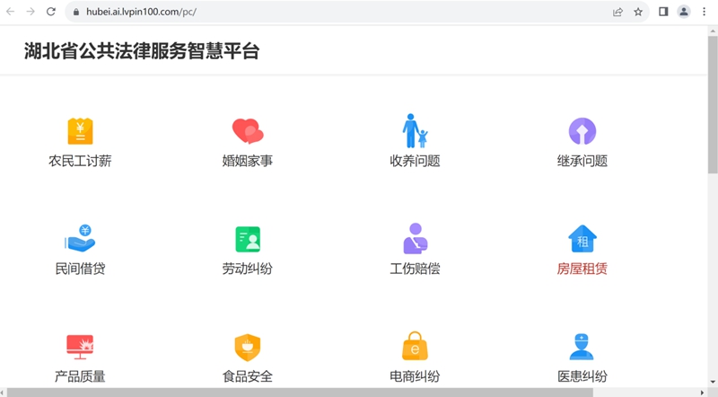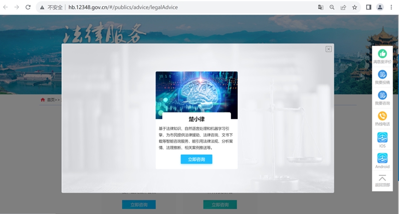 第四步:点击“立即咨询”,跳转入湖北省公共法律服务智慧平台,选择相应法律问题。