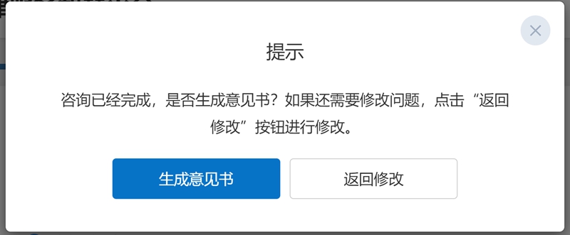 第七步:根据实际情况选择相应选项,回答完毕后自动生成意见书。