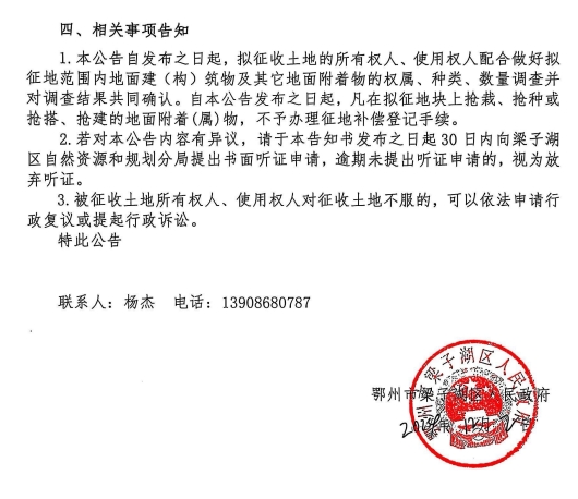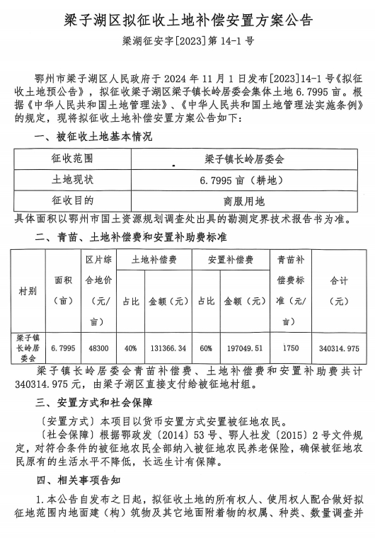 梁子湖区拟征收土地补偿安置方案公告 梁湖征安字[2023]第14-1号