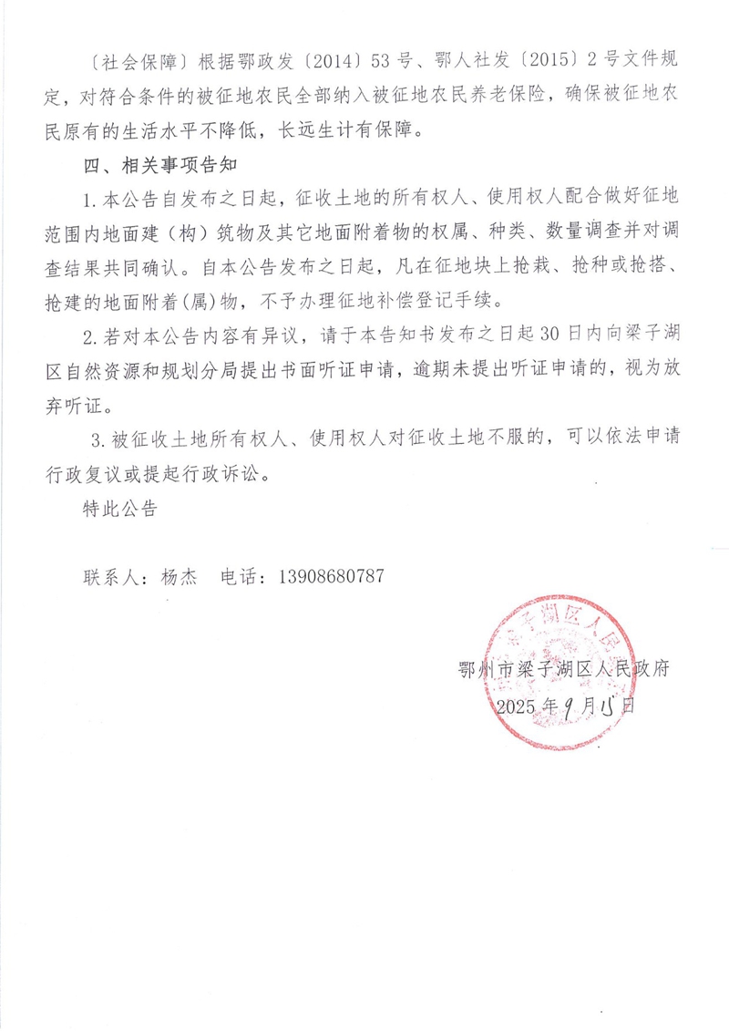 梁子湖区征收土地补偿安置方案公告 梁湖征安字〔2025〕第7号