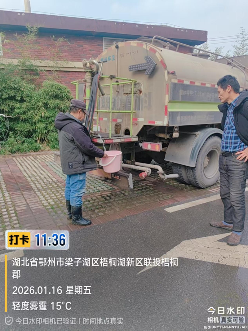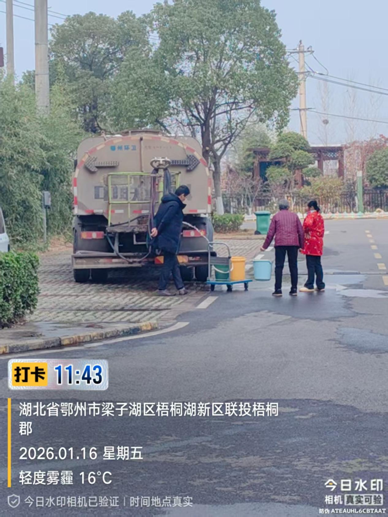 2026年1月16日,由于因武黄高速改扩建工程供水DN630主管网改迁对接施工造成停水,险情发生后,鄂州市水务集团会同梁子湖区水利和湖泊局第一时间赶赴现场,召开紧急会议,同步启动应急预案,统筹调配人员物资,全力投入应急处置工作。协调消防车及洒水车,在短时间内,组建送水队伍,并安排供水网格员规划送水线路,火速奔赴各停水区域。