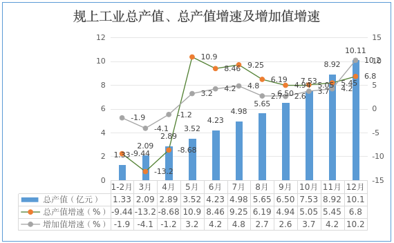 1-12月,梁子湖区19家规模以上工业企业实现总产值10.11亿元,同比增长6.8%,1-12月规模以上工业企业增加值增速10.2%,全市排名第二,高于全市2.7个百分点。梁子湖区19家规模以上工业企业实现营业收入8.14亿元,同比增长4.3%。