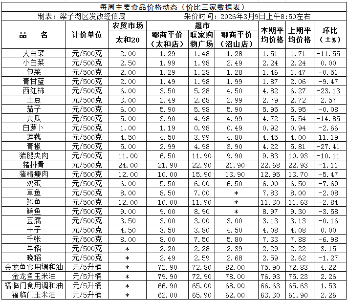 ·梁子湖区2026.3.9日主要食品“价比三家”数据表.xls