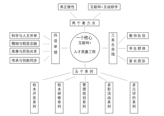 一抓理念载体:从校训、校歌、校徽、教学理念、育人目标、价值追求等层面,体现办学的育人取向,反映校长在文化育人中的核心教育理念。