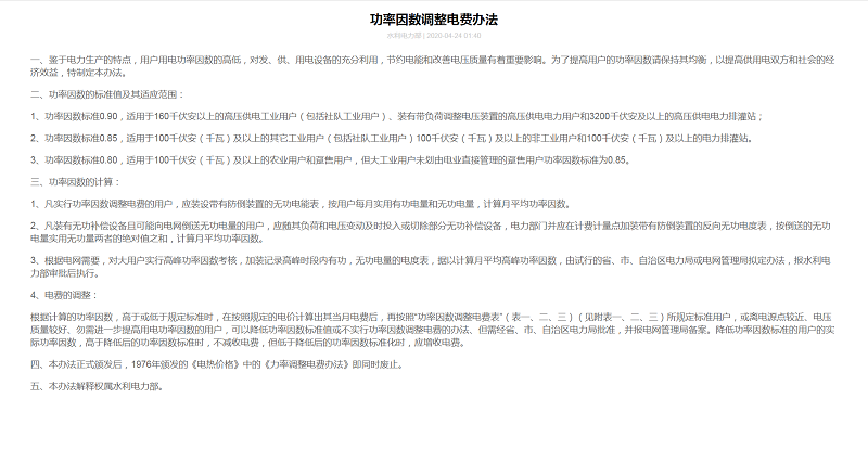 功率因数调整电费办法