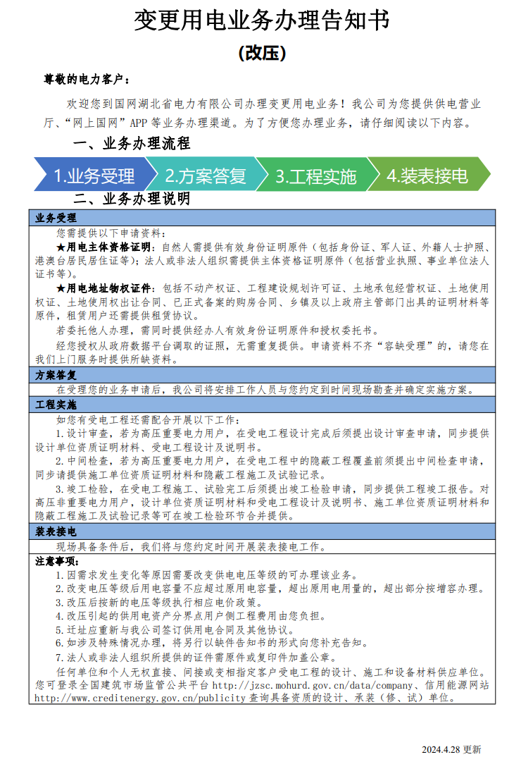 变更用电业务办理告知书——改压