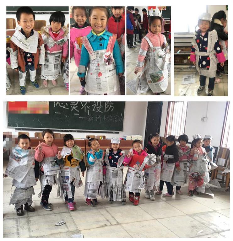 从我们的脚踏入校园开始,孩子们就围在我们身边叽叽喳喳,好奇地问东问西。在社工有序的引导下,孩子们排好队伍,准备开始接下来的活动。一轮破冰游戏下来,孩子们的情绪高涨,似乎完全卸下了内心的隔阂。接着我们把孩子们分成四组,让他们利用旧报纸设计制作出不同的服装。“同学们,充分发挥你们的想象力,服装设计好后,我们还有一场时装走秀哦”。话音刚落,同学们就不由自主的相互谈论起来,纷纷出谋划策,跃跃欲试。现场的氛围非常热烈,果然,孩子们人小鬼大,设计的衣服奇异多样、风格独特、款式新颖。在时装秀上,一个个小“模特”像小“精灵”般穿梭在教室中间,每个人脸上都洋溢着灿烂的笑容。