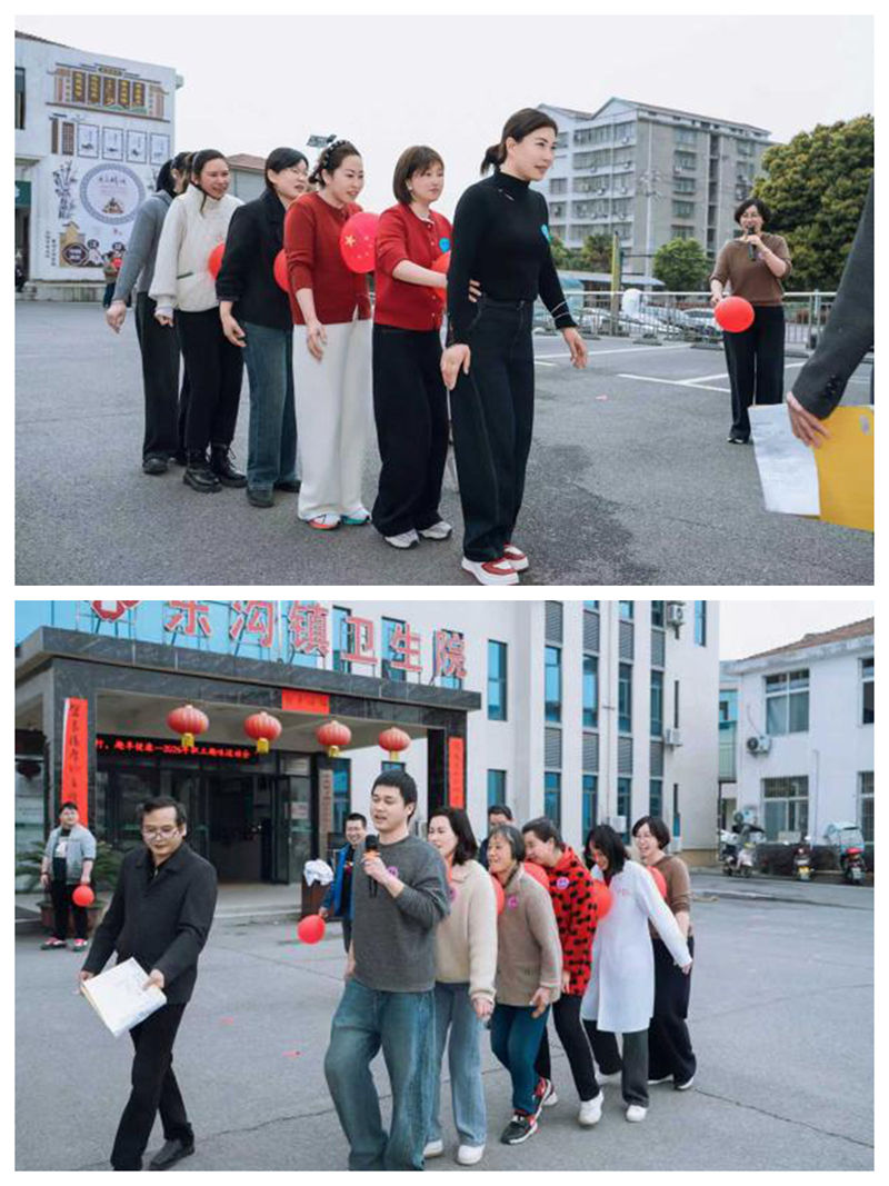 下午2点,随着欢快的运动员进行曲,各参赛队伍精神抖擞地列队入场。院长汪勇发表了简短而热情的致辞,他鼓励大家在比赛中发扬“友谊第一、比赛第二”的精神,赛出风格、赛出快乐,并把运动场上的拼搏协作精神带回医疗工作中,更好地为患者服务。开场以一段舒缓舒展的八段锦热身操,在肖素萍、刘永芳两位老师的带领下,全体职工身穿工作服,整齐列队、动作舒展,快速活动身体,为接下来的趣味比拼做好准备。