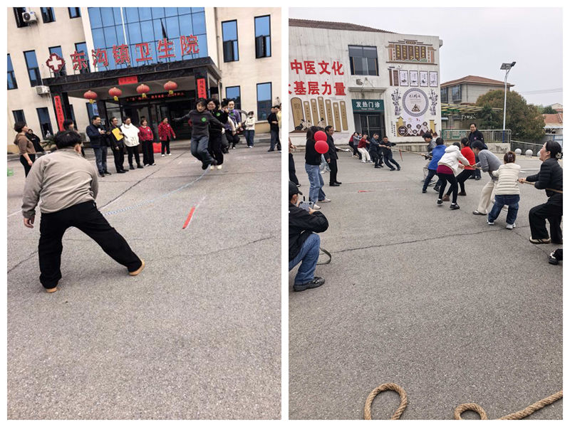 6.“力拔山河”:作为压轴大戏,将现场气氛推向了高潮。随着裁判一声哨响,双方队员紧握长绳,身体后倾,憋足了劲往后拉。平日里拿着听诊器、注射器的手,此刻攥紧绳索,为了团队的荣誉拼尽全力。院领导也加入队伍或在场边指挥助威,加油声震耳欲聋。